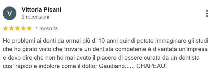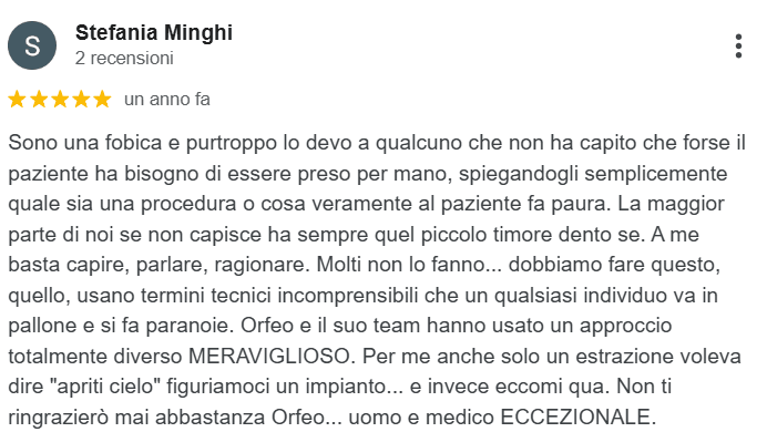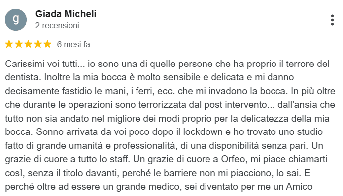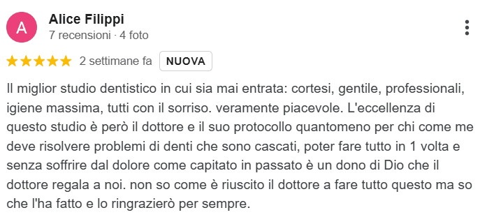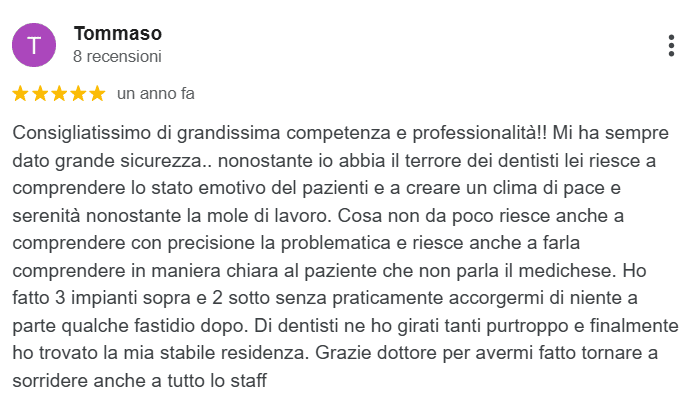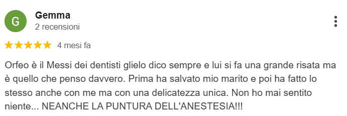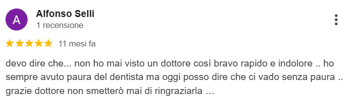 "Ho notato assenza di dolore, velocità nell'intervento ed è stato non invasivo. Lo consiglierei certamente perchè non ho avuto nessun dolore"
