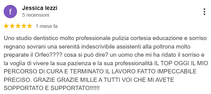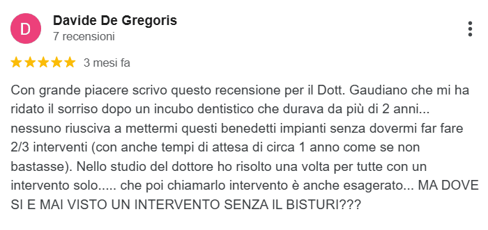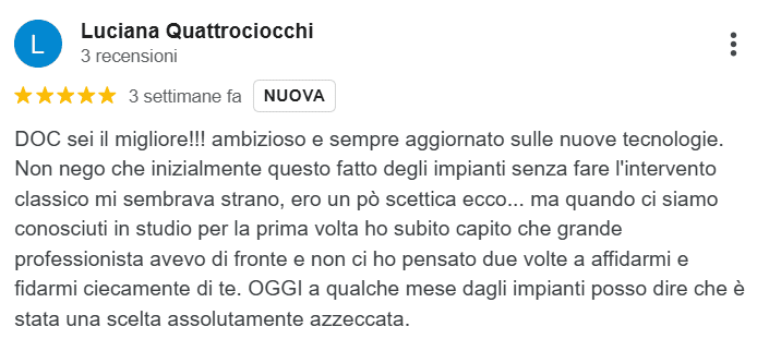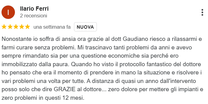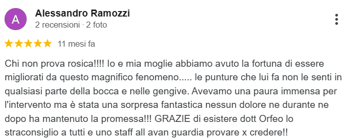 "L'intervento che ho fatto all'arcata inferiore è stato abbastanza veloce e non doloroso, non c'è stato nessun tipo di problema"